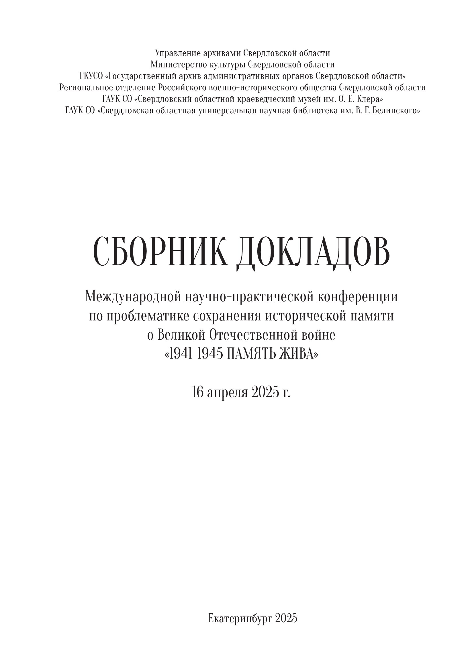 На сайте Государственного архива административных органов Свердловской области размещен электронный сборник докладов Международной научно-практической конференции по проблематике сохранения исторической памяти о Великой Отечественной войне «1941-1945. Память жива».