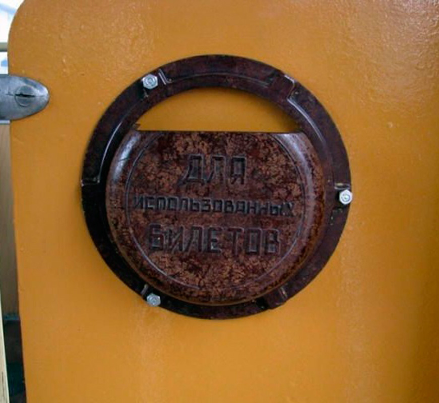 В салоны автобусов установили кассы самообслуживания. Стоимость одной поездки составляла 5 копеек. Пассажир закладывал монету и отрывал билет.
