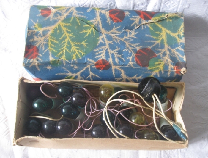 В 1938 году появляются первые елочные гирлянды: раскрашенные в разные цвета автомобильные лампочки, соединенные проводом (фото 003).