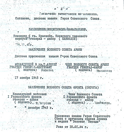 Документы о присвоении звания Героя Советского Союза В.А.Верескову.