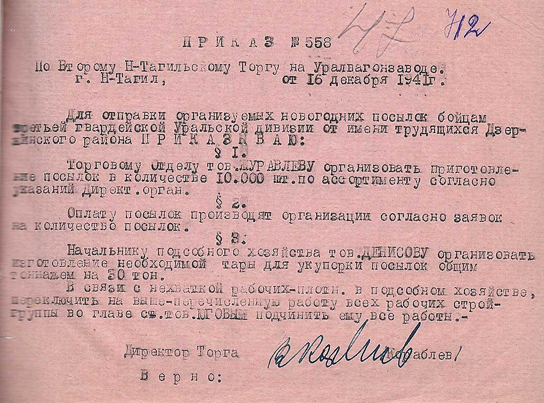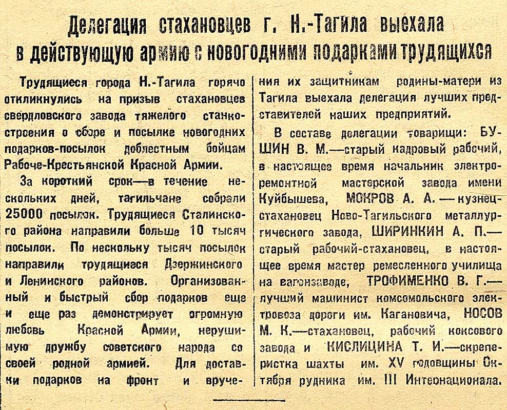 Вопреки всему, в декабре 1941 г. в Свердловской области проходил сбор новогодних посылок для бойцов Красной Армии.