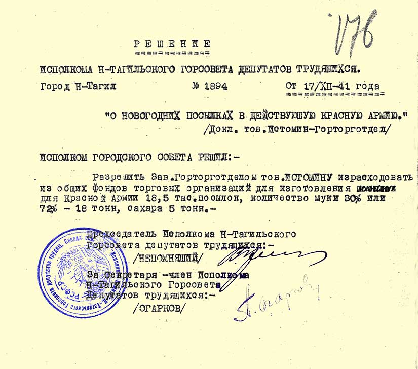 МКУ "Нижнетагильский городской исторический архив" (НТГИА) Ф.70. Оп.2. Д.92. Л.176.