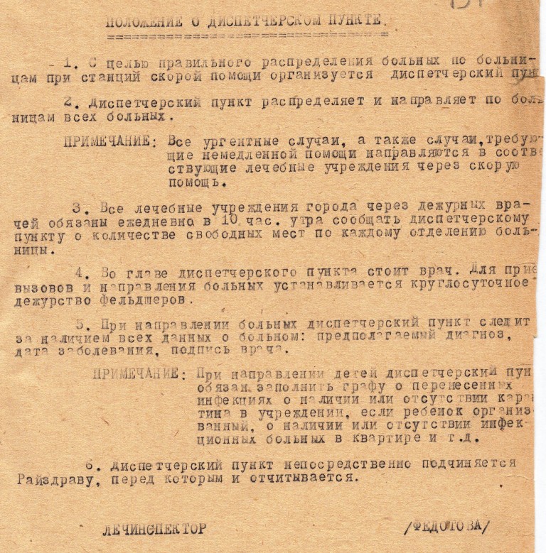 12 ноября 1941 года вышел приказ Наркомздрава СССР о создании медико-санитарных частей на предприятиях. Формировались цеховые и заводские здравпункты, создавались небольшие больницы, ночные профилактории.