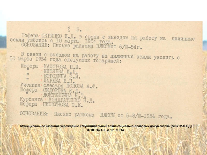 На призыв партии откликнулась вся страна, началась мобилизация. В отделы кадров предприятий и учреждений нескончаемым потоком шли работники разных профессий, готовых покорять целину.