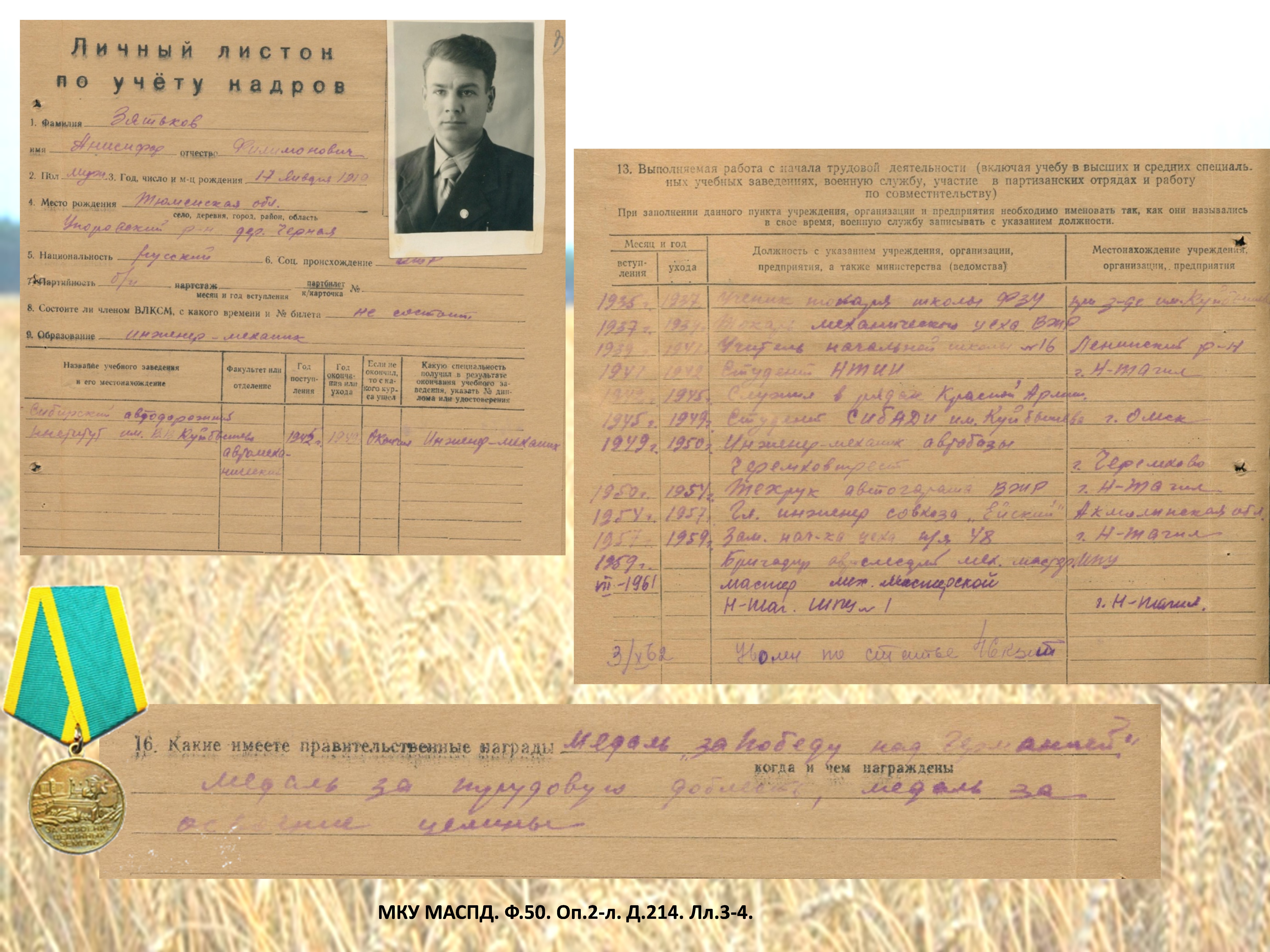 Медалью награждались труженики, проработавшие в районах освоения целинных земель более двух лет. Почти 32 тысячи уральцев были удостоены этой награды, в их числе тагильчане. Работниками архива были выявлены личные дела «целинников», отмеченных этой медалью.